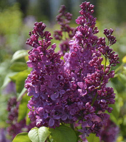 • Цветки: махровые, пурпурно-лиловые, выгорают до голубовато-лиловых.