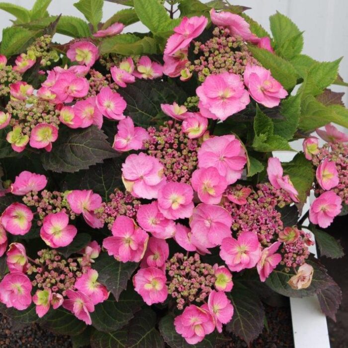 Гортензия Коттон Кэнди (Cotton candy) — гибрид гортензии крупнолистной и гортензии пильчатой. Образует компактный куст с сильно разветвленными побегами, высотой 60-80 см. Стерильные цветки ярко-розовые с зеленоватым центром (на кислых почвах- голубые), собраны в полумахровые соцветия тип «Lace cap». Цветение ежегодное и обильное в июле-сентябре на побегах прошлого и текущего годов.