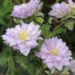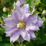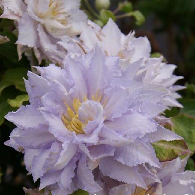 Раннецветущий, компактный сорт с белыми махровыми, слегка сиреневыми цветками с жёлтыми тычинками. Их размер не превышает 8 см в диаметре. На побегах прошлого распускается махровыми цветами в мае–июне, а на побегах нынешнего года – простыми в августе–сентябре. Цветки наращивают лепестки в течение всего периода цветения и к концу сезона становятся полностью махровые. Максимальная длина побегов взрослого растения (через 5 лет) — 1.5 м, ширина разрастания 2 м. Группа обрезки: 2 (слабая). Время обрезки клематисов этой группы приходится на конец зимы или раннюю весну. Мертвые и слабые побеги следует удалить, а оставшиеся побеги обрезать на 15-20 сантиметров выше пары хорошо развитых почек.