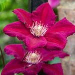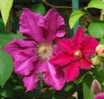Сорт отличается поздним, но довольно длительным и обильным цветением. Он может достигать в высоту 4 м и и до 1,5 м в ширину, легко вьется по сеткам, оградам и даже стволам небольших деревьев. Ветви толщиной 2–3 мм, сверху ребристые, опушенные, коричнево–серого цвета, гибкие, сильно ветвистые. Цветет исключительно на побегах текущего года. Цветки из 5–6 бархатистых лепестков, около 15 см в диаметре, слегка бархатистые, с кремово-коричневыми тычинками. Лепестки заостренные, продолговатые, с волнистым краем, могут быть красно–лилового, красно–бордового или яркого–красного цвета. Цветет растение с июня до начала октября. Ernest Markham отлично растет на ярком солнце, ее цветки не склонны выгорать под прямыми солнечными лучами.