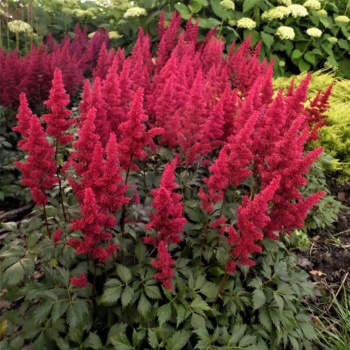 Невероятно красивый сорт, отличающийся от других ярко-красными соцветиями на фоне темно-зеленой листвы. Высота во время цветения около 60 см. Цветёт в июне-июле. Цветки мелкие, ярко-красные, собраны в разветвленное, метельчатое соцветие. Предпочитает полутень, возможна посадка в тени, но растения развиваются хуже. На открытых солнечных местах выращивание возможно только при условии достаточно влажных почв. Почвы предпочитает плодородные, хорошо удобренные, суглинистые. Ежегодно в верхней части корневища формируются дочерние почки, а нижняя его часть постепенно отмирает, вертикальный прирост составляет 3-5 см в год, поэтому в конце осени к основаниям кустов подсыпают плодородную землю. После цветения соцветия необходимо обрезать, не дожидаясь созревания семян. Зимостойка. На одном месте растет 4-5 лет. Норма посадки 4-9 шт/кв.м