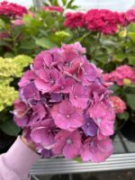 Гортензия крупнолистная Страмини/Джемини – очень оригинальный и эффектный сорт! Округлые соцветия имеют интересную разноцветную окраску: лепестки с необычными зубчиками по краям на кислых почвах окрашены в синий, фиолетовый и зеленый цвета, а на щелочных – в розовый и зеленый. Цветки крупные, шаровидные, до 20—25 см в диаметре, образуются на концах побегов. Цветет в июле-сентябрь. Куст высотой 80-120 см. Растет быстро, теплолюбива, требовательна к почве и влаге, не переносит извести. Мирится с небольшим затенением, маломорозостойка (до -18 град). Требует укрытия на зиму.