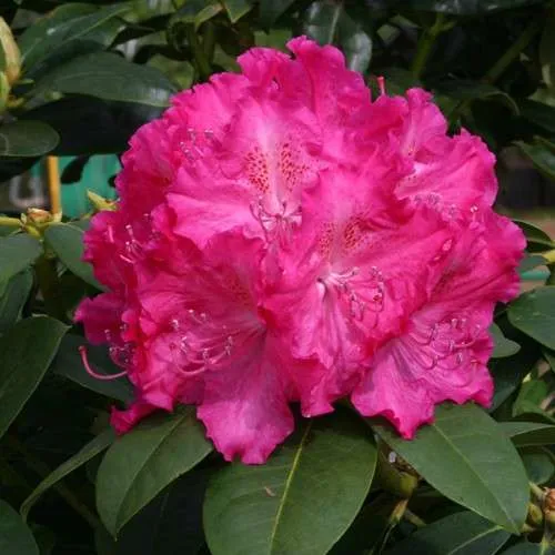 Взрослый куст вырастает до 2-2,5 м в высоту, на столько же раскидывает ветви в диаметре. Лист в форме эллипса, темно-зеленый. Плотный до 8-10 см. Цветение в мае-июне, в северных регионах может позже. Цветы махровые, крупные в нежно розовых оттенках с примесью фиолетового. Сердцевина светлая, края лепестков ажурные. Соцветия плотные, состоят из 10-15 цветков, без ярко-выраженного аромата. Кора серого оттенка с темными чешуйками. Выдерживает до – 23 С, но молодым посадкам на зиму требуется укрытие.