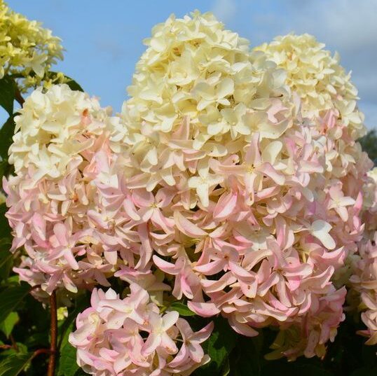 Удивительный сорт. Образует куст высотой 1 -1,2 м и шириной 0,9 — 1 м. Соцветие у этого сорта крупное, 15-20 см и наполнено необычными, стерильными цветками, похожими на гиацинты. В народе этот сорт называют гиацинтовой гортензией. Распускается зеленоватыми, затем становится белым и позже приобретает розоватые оттенки. Цветёт с июля и до сентября.
