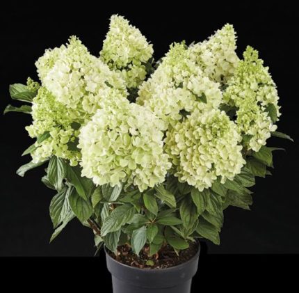 Гортензия метельчатая «Литл Пэйшн» – компактный сорт образует кустик высотой всего 50-60 см и диаметром 60-80 см. Окрас цветков сливочно-зелёный, в зависимости от РH почвы и сезона может давать розовинку.