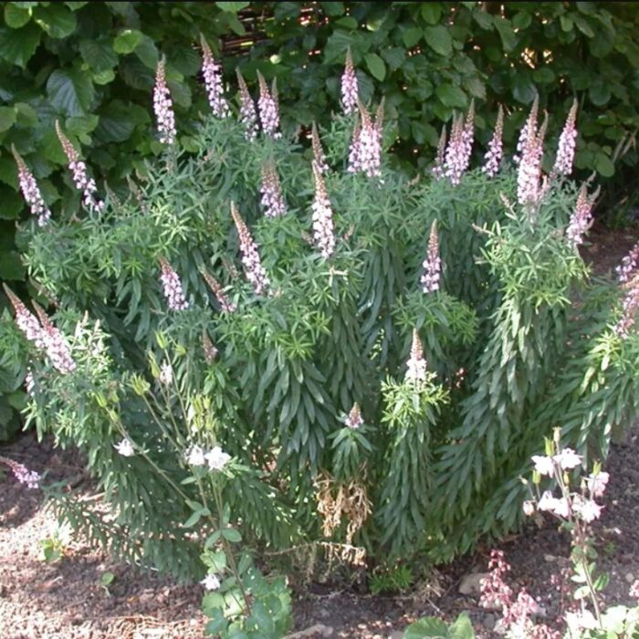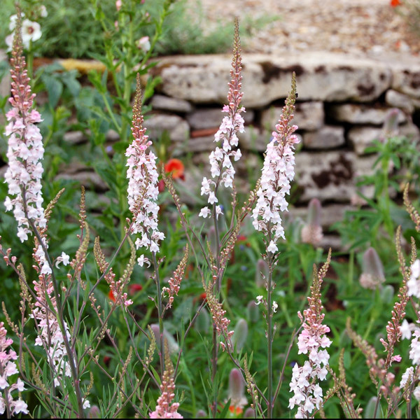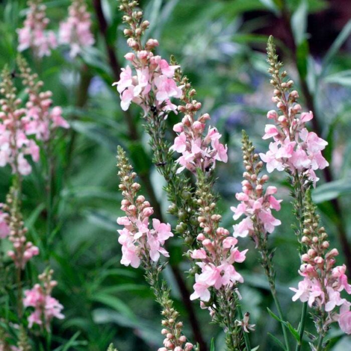 Очень интересный сорт с сизо-зеленой листвой и темными цветоносами. Светло-розовые цветки собраны в вертикальные колосовидные соцветия на верхушках прямостоячих побегов. В высоту льнянки нередко вырастают до высоты 1 м. Неприхотливое засухоустойчивое растение для солнечных мест с дренированными почвами. Прекрасный медонос, привлекает в сад бабочек и пчел.