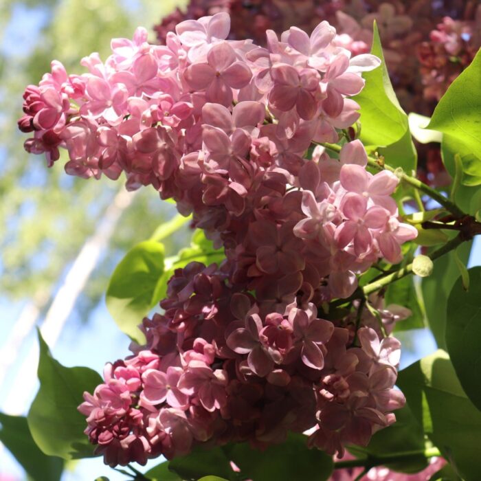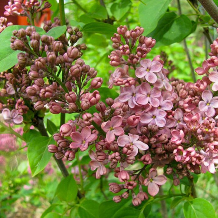 Сирень Медовый спас — куст пышный, раскидистый, образуется прямыми, вертикальными побегами, покрытыми сердцевидными листьями насыщенно-зеленого цвета. Цветение начинается в конце мая, длится около трех недель. В этот период появляются крупные цветочные кисти простого типа. Аромат густой, насыщенный, приятный. Высота взрослых кустов — 3-4 метра. Бутоны шоколадные с хорошо заметным зеленым оттенком. Цветки простые, среднего размера (2,3 см). Лепестки с внутренней стороны светло-розовые с лиловатыми тенями и голубыми бликами. Обратная сторона розовая с кофейными тонами. Соцветие состоит из одной пары пирамидальных кистей (26 см). На солнце сирень цветет ярче, но быстрее выцветает и отцветает, в полутени цвет соцветий может быть не такой яркий, но он держится дольше