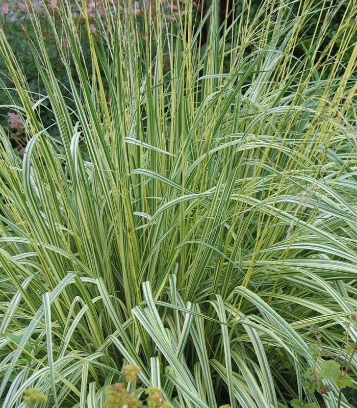 Очень эффектный сорт с превосходной пестрой листвой и густыми соцветиями-метелочками. Листья зеленые со светлой полосой от кремово-белого до светло-желтого оттенка. Цветочные стебли желтого цвета. Разрастаясь, образует очень красивые ажурные куртины. Высота до 60 см, соцветия перистые, длиной до 30-35 см. Время цветения июль-август.