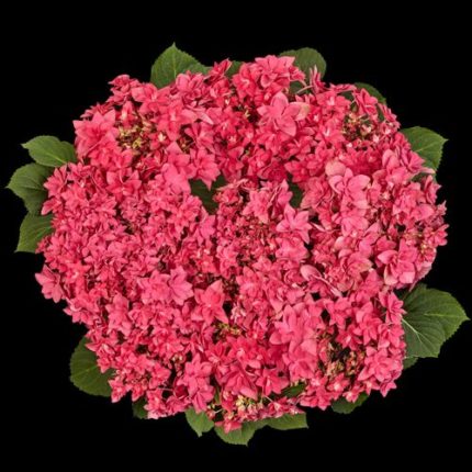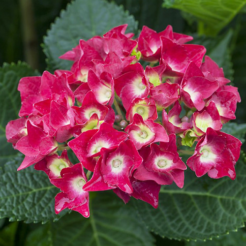 Гортензия крупнолистная Royal red растет высотой 1,5–1,8 м. Побеги прямостоячие, крепкие. Листья простые, яйцевидные, темно-зеленые. Соцветия крупные 15-20 см в диаметре. Цветки красно-фиолетовые, на щелочных почвах цветки красные. Цветет с июля и держит соцветия до сентября. Цветет на прошлогодних побегах. С каждым годом соцветия всё крупнее и величественнее, оправдывает своё имя Royal.