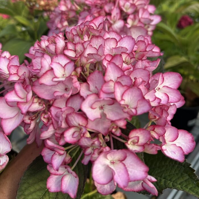 Гортензия крупнолистная «Сальса» имеет бело-розовые соцветия с крупными цветками, которые очень красиво смотрятся на фоне фиолетово-бронзовой листвы. Обрезка отцветающих соцветий стимулирует повторное цветение. Период цветения: июль-октябрь. Размер цветка соцветия – 25-30 см.