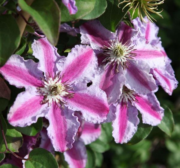 - Цветы: бледно-лиловые с яркой пурпурно-красной полоской